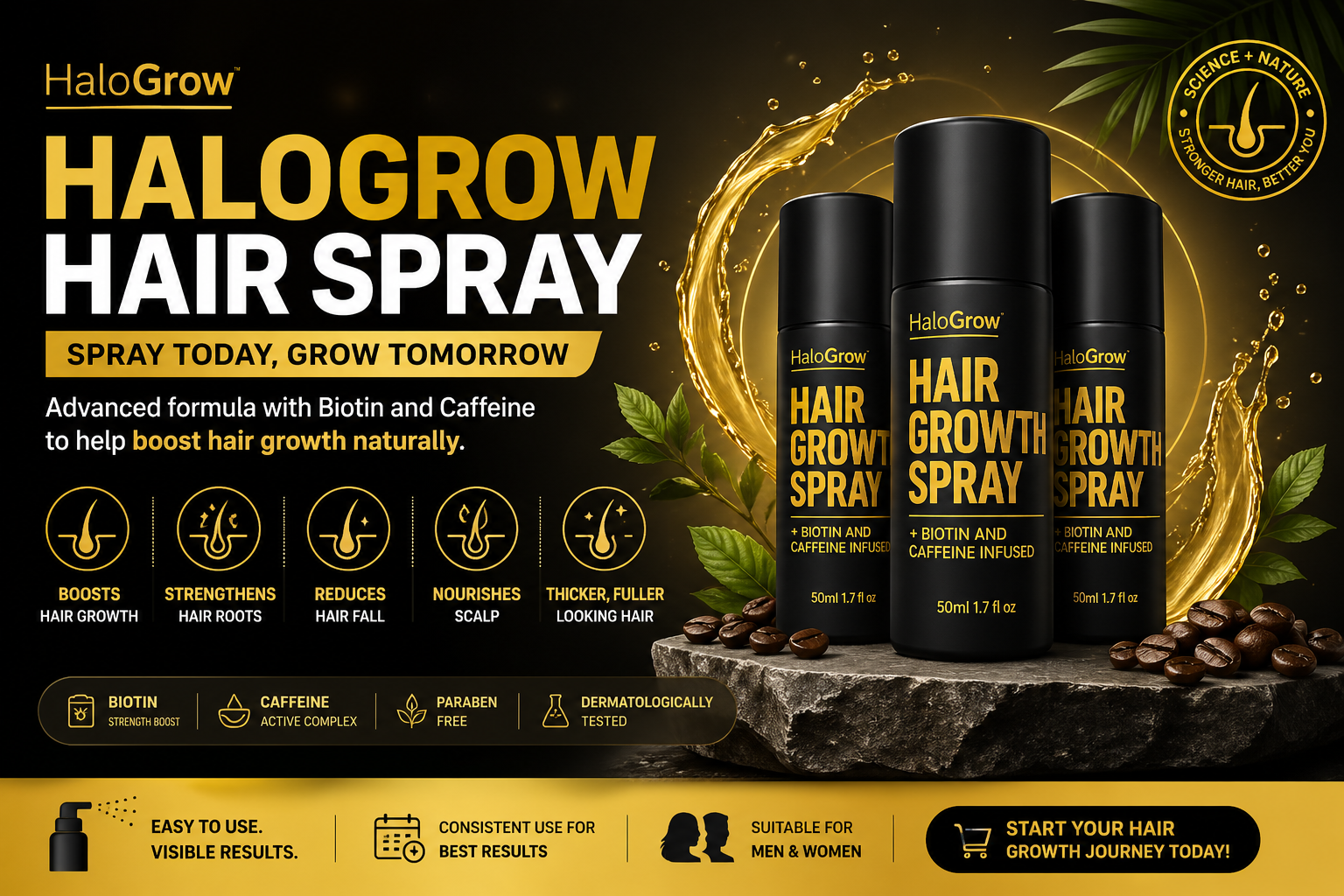 A healthy scalp is essential for hair growth. Products like Halogrow Hair Spray are often formulated to nourish the scalp and improve conditions that support follicle function.